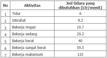 • Lampiran : Tabel jumlah udara yang dibutuhkan seseorang sesuai aktifitasnya :